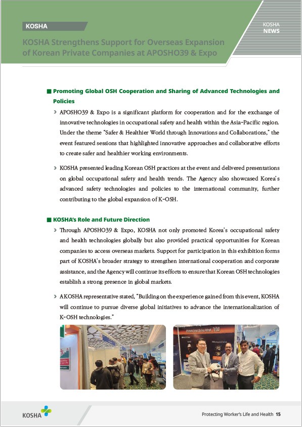 한국산업안전보건공단(KOSHA)의 지원을 받아 참가하며, 글로벌 산업안전 시장 진출을 본격화했다.