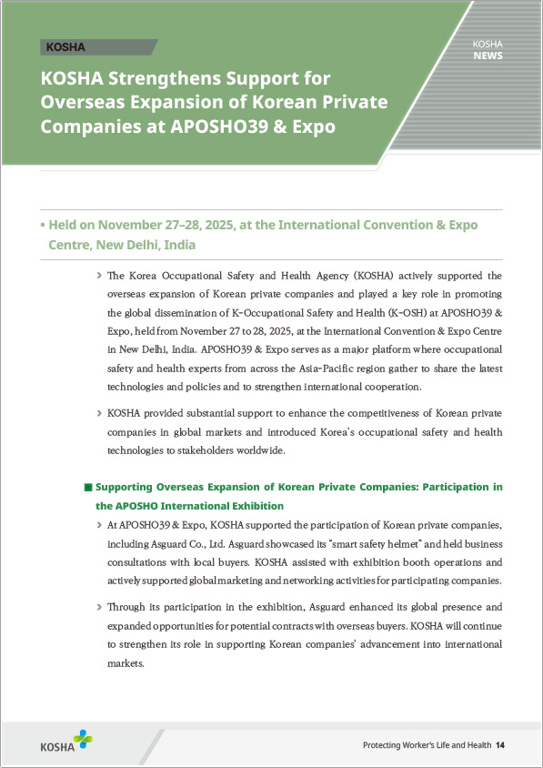이번 전시는 아시아·태평양 지역 산업안전보건 전문가와 기업이 한자리에 모이는 국제 행사로,